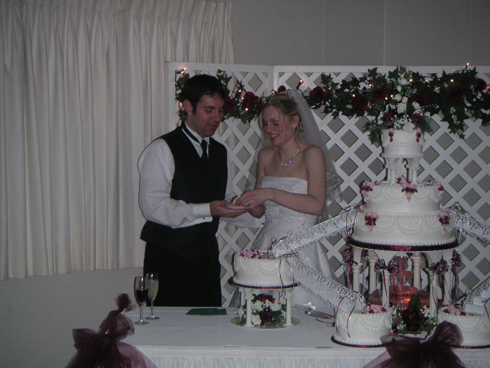 As many of you know, several of our friends and family have been having some very serious relationship issues in the last two years. Apparently our female friends can't seem to be faithful. This has been a huge source of stress and concern for us. But in a way, it's helped us talk through some things in hopes of preventing our marriage from being another statistic. December 27 marked our 7th wedding anniversary. I can't even believe that it's been that long already. We were able to celebrate by having lunch together and hanging out a little in the afternoon. For dinner we took our first trip to Sullivan's Steakhouse, where we gorged ourselves on delicious steak. Since we are child free this week, it was actually nice to be able to go out to dinner without worrying about getting home quickly. I can honestly say that Brad and I are best friends. I love him more than I ever thought possible and can't wait to spend the rest of our lives together. The only itch I have is to have more time together. (Please note how skinny I was and how chubby Brad was. Oh how things have changed!)